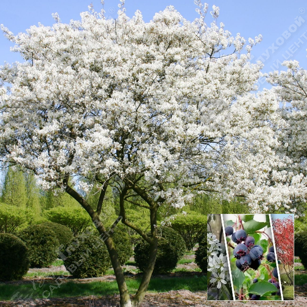 Цветки звездчатые, собраны в многочисленные белые соцветия. Цветение - апрель-май. Плоды съедобны, используются в кулинарии как в свежем, так и в консервированном виде. Зимостойка, выносит полутень, но на свету цветёт обильнее.