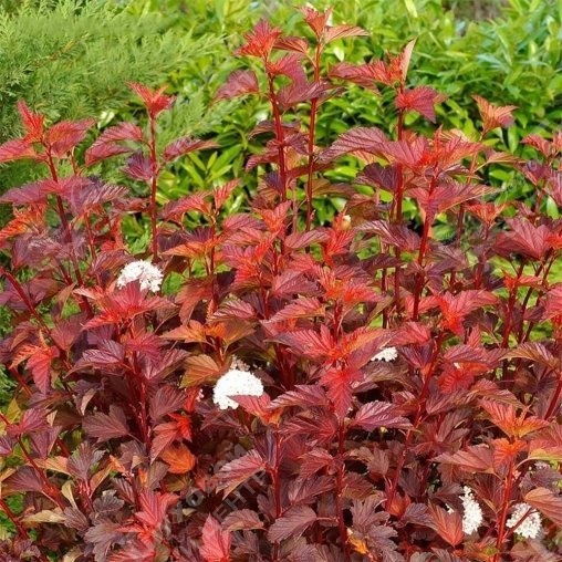 При этом он обладает раскидистой плотной кроной сферической формы со слегка поникающими ярко-красными молодыми, светло-коричневыми побегами. Края пильчатые, молодая листва окрашена в медно-красные или оранжево-красные цвета, ближе к лету оттенки сменяются на темно-багряную палитру, однако верхушки побегов по-прежнему украшают оранжево-красные тона, осенью преобладает золотистый цвет. В тени интенсивность окраски теряется, листва становится обычной зеленой. Используется в одиночных и групповых посадках для создания бордюров,опушек, древесно-кустарниковых и кустарниковых групп, композиций с хвойными и травянистыми растениями.