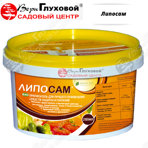 Прилипатель Липосам – это средство применяющееся с другими препаратами для защиты и подкормки растений. Обладает важнейшими липкогенными и влагоудерживающими свойствами. Действующее вещество — полисахариды природного происхождения липкогенной композиции. Препаративная форма Липосам - гель от светло-серого к бежевому цвету, в водных растворах – биоколлоид.