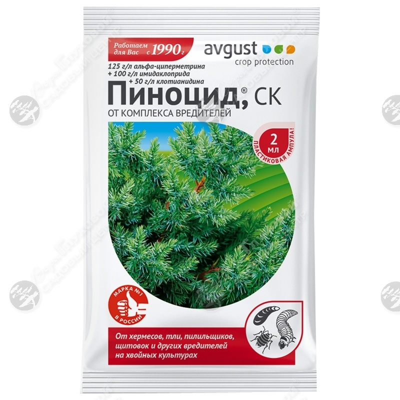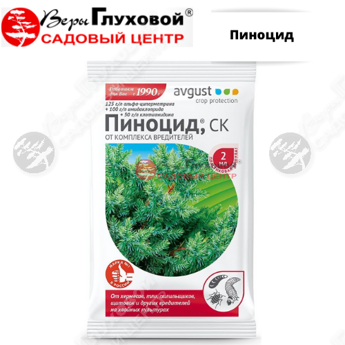 Пиноцид - незаменимый препарат для защиты хвойных культур от широкого спектра вредителей. Полная гибель насекомых наступает в течении 24 часов.